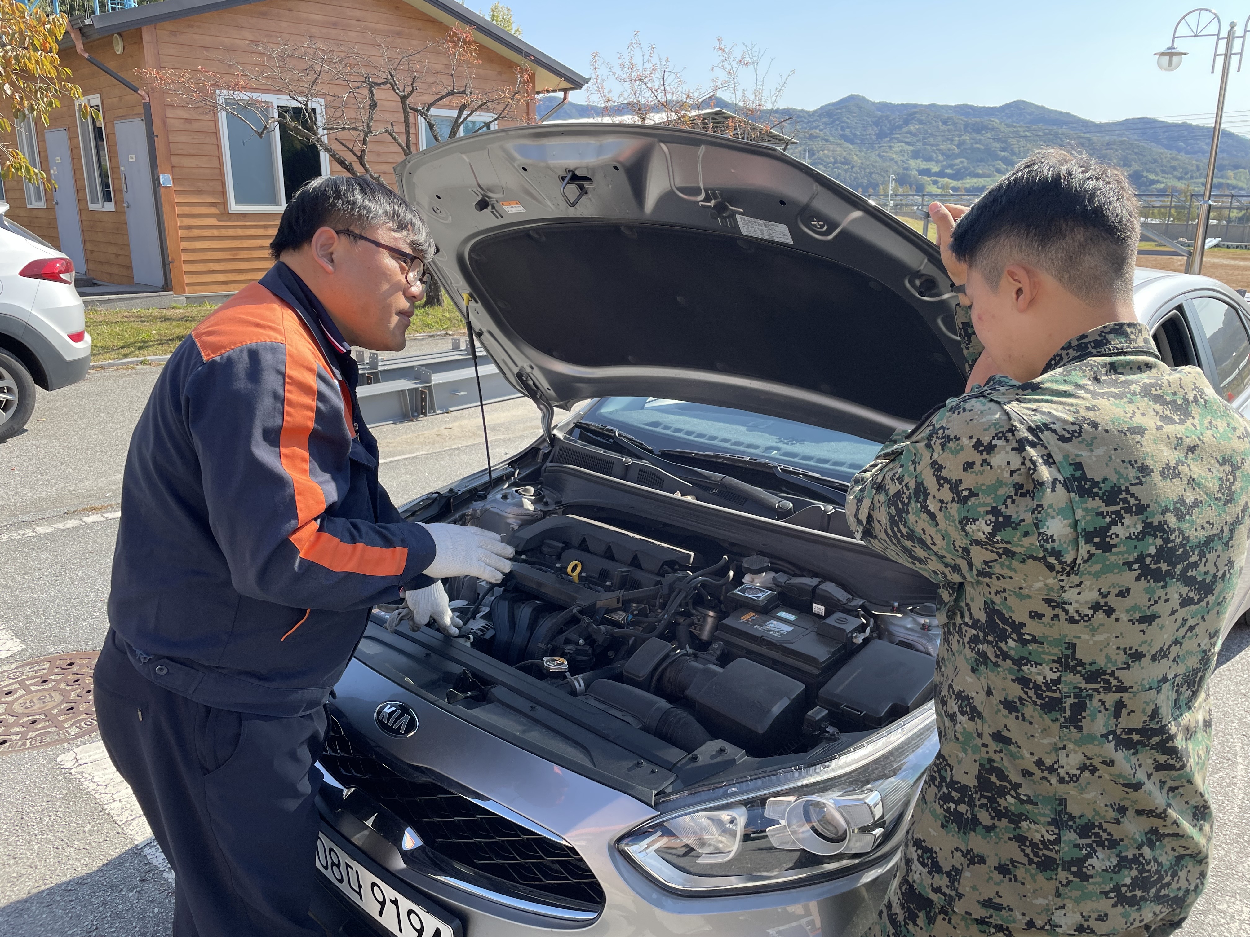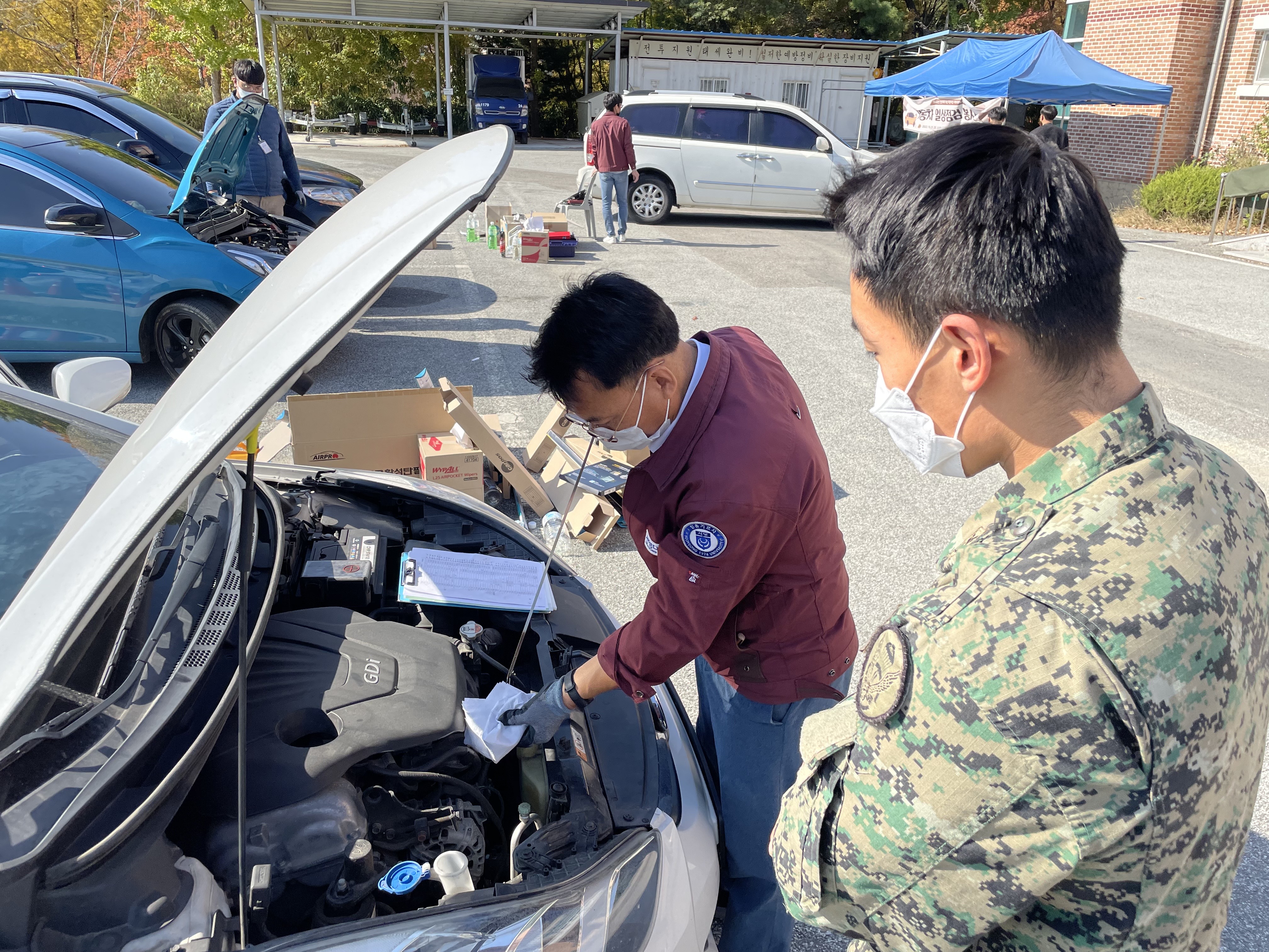 지역사회 주민을 위한 봉사활동의 일환으로 11공수여단에 방문하여 자동차 일상점검 봉사활동을 진행하였습니다.