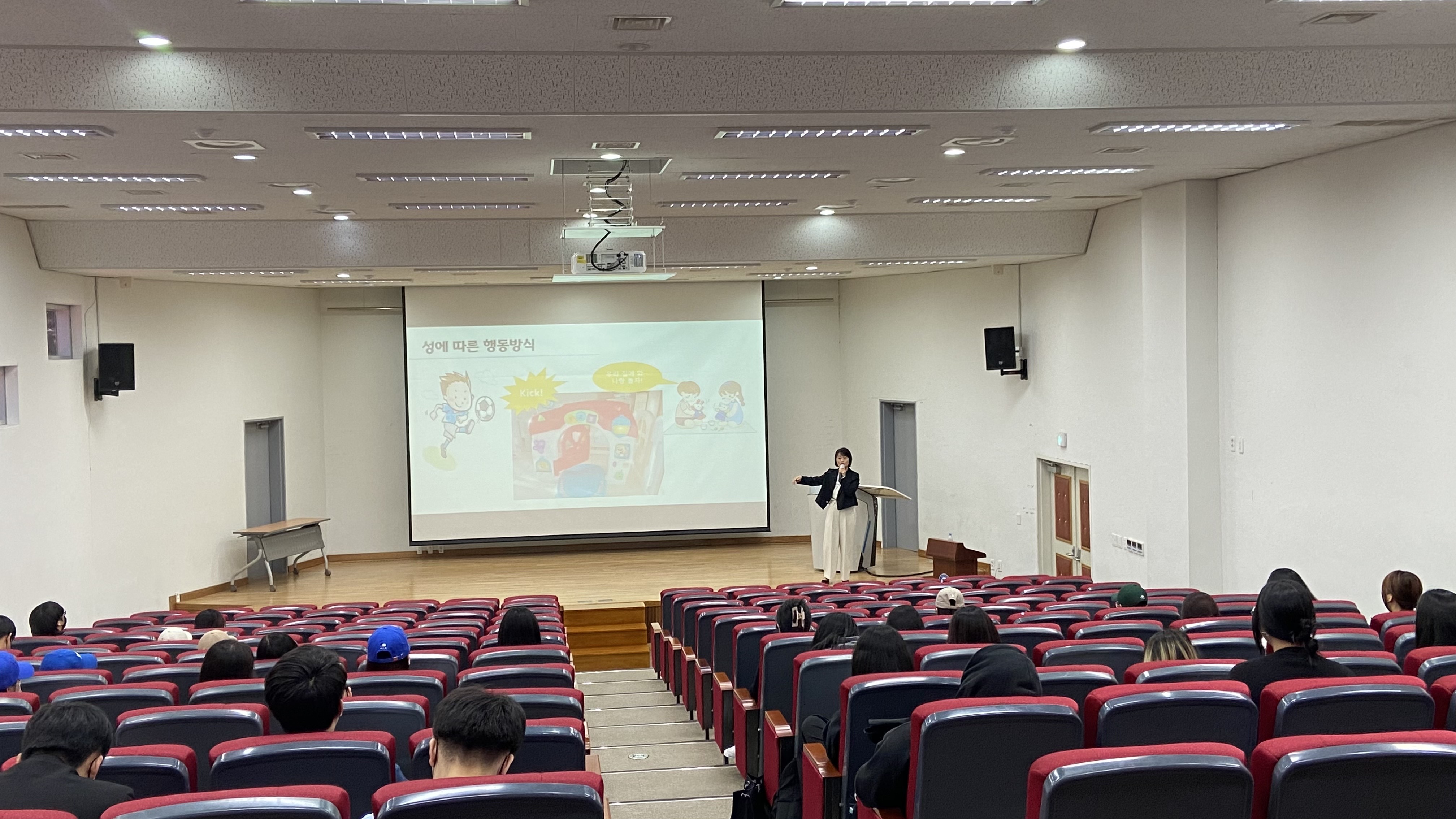 - 내용 : 아동 폭력의 유형(신체 학대, 정서 학대, 성 학대, 방임 및 유기 등에 대해 알아보았습니다. 유아교육 현장에서 유아의 사회적 성 발달과 현상과 아동 학대와 성적 학대에 있어서 교사가 반드시 알고 있어야 할 대처 법을 자세히 배울 수 있었습니다. 아이가 성에 대한 지식과 정보를 부모와 교사로부터 얻어 성에 대해 본질적이고 원초적이며 근본적이기 때문에 교사로서 교육이 중요하다는 이야기를 나누었고, 성차별로 인해 시도하지 못했던 일에 대한 질문 및 실제 일상에서 성차별을 느낀 사례를 통한 질의 응답 시간을 가지며 특강을 마무리하였습니다.