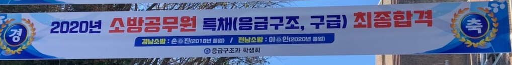2020년 소방공무원 특채(응급구조,구급) 최종합격 프랑카드 -경남소방 손*진(2018년 졸업), 전남소방 이*인(2020년졸업)