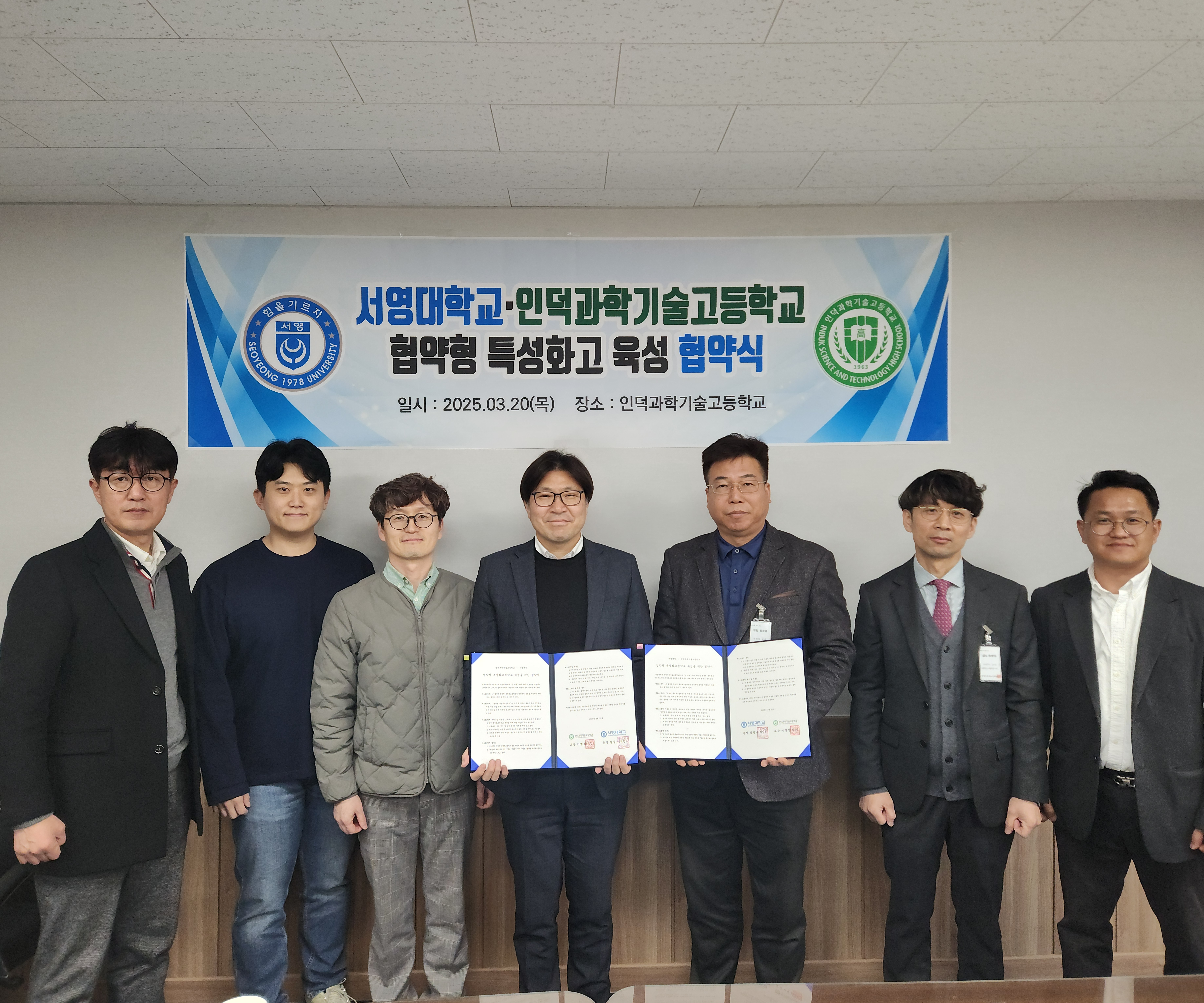 협약식 참석자로는 인덕과학기술고등학교 이O은 교감 선생님과 미래자동차과 교사 이O기, 최O엽, 노O호 서영대학교 에서는 산학협력부단장 봉O준 교수, 미래자동차과 학과장 송O현 교수 미래자동차과 김O태 교수가 참석하였습니다.