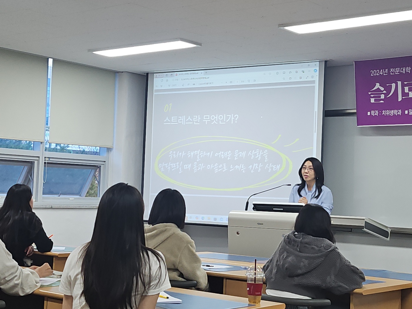 인권상담센터에서 주관하는 스트레스 관리법에 대한 특강을 학사학위 전공심화과정 재학생들을 대상으로 진행하였습니다.
