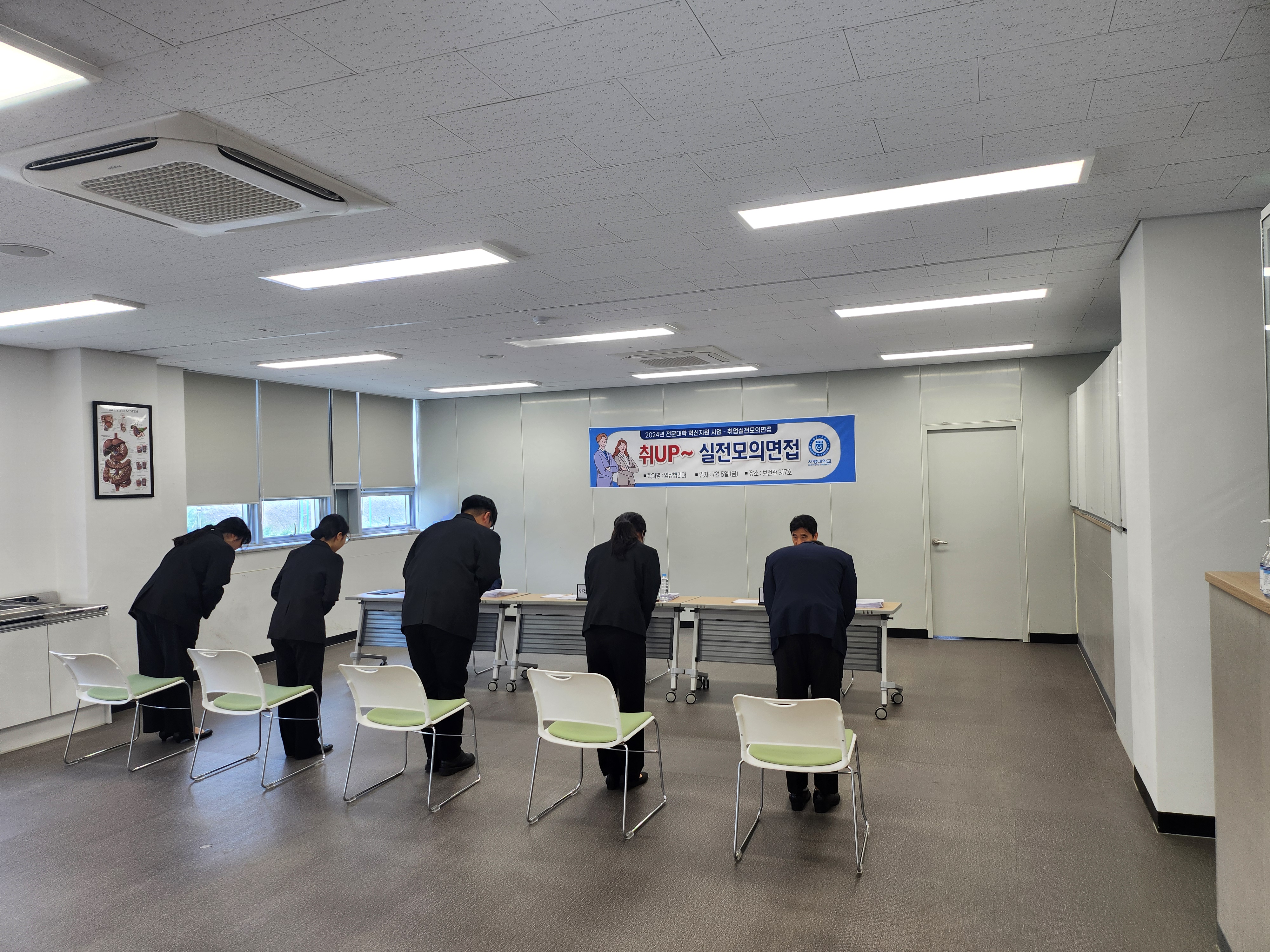 지난 7월 5일, 우리 학과에서는 졸업을 앞둔 3학년 학생들의 성공적인 취업을 지원하기 위해 '취UP! 실전모의면접' 프로그램을 진행했습니다. 3학년 학생들은 자신의 이력서, 자기소개서, 증빙 서류 등을 제출하여, 실제 채용 과정과 동일하게 준비했습니다.